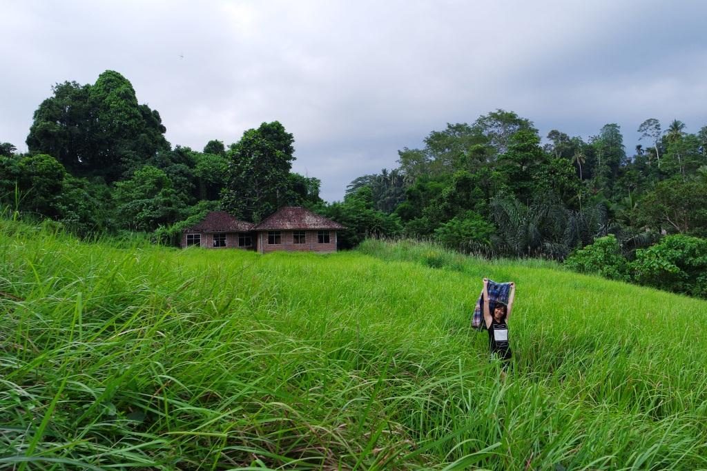 Waktu itu saya pakainya cuma sandal jepit dan pakaian se-nyaman mungkin biar kalau keringetan gak jengah. Dari parkiran motor, turun aja ke bawah. Seingat saya, gak bakal nyasar deh, ada tanda penunjuk, meski di sekitar sana sudah tidak ada rumah penduduk alias udah alam bebas. Nanti jalan terus, bakal ketemu komplek Pura Gunung Lebah yang cakep. Tak perlu masuk cukup lewati aja sambil menaiki anak tangga, hingga akhirnya sampai ke bukit Campuhan Ubud di mana sekeliling sudah berubah jadi padang ilalang yang hijau.