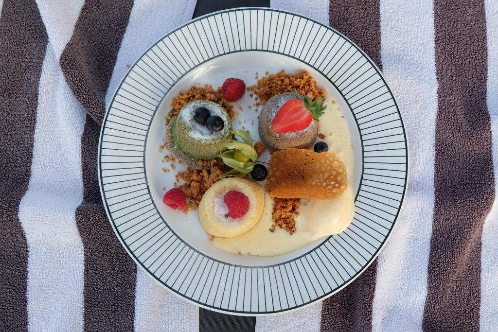 Selain itu, biar prosesnya cepat karena Cork & Screw Country Club ini tau banget ambiance di sini juara banget jadi pasti rata-rata kalau udah baring di samping pool, langsung auto mager. Oleh karena itu, tiap tamu dibatasi hanya 2 jam. Nah jadi biar cepet gak bingung pilih menu, kami udah tau mau pesen Wonton Soup tapi habis jadi gantinya Trio Molten Cake (70K) dan minumnya Coco The Dragon (45K). Emang sengaja kami ke sini bukan buat ngenyangin perut, tapi untuk memanjakan indra penglihat dan mengistirahatkan jiwa dari hingar bingar Jakarta..