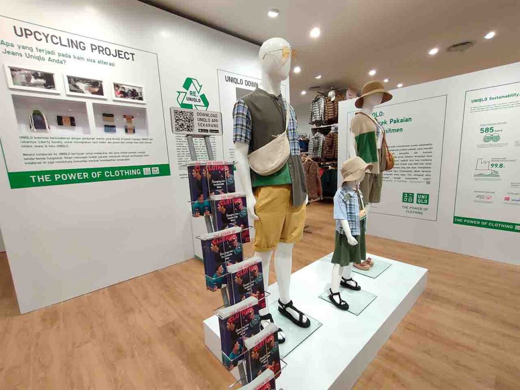 Setelah uji adrenaline, aku baru ke Uniqlo store yang katanya the most iconic uniqlo store di Indonesia. Mall baru buka tapi ternyata di Uniqlo store udah rame banget. Kayaknya orang sengaja ke PIM 3 cuma buat belanja Uniqlo deh karena lagi banyak promo. Tapi kalau aku sengaja datang karena mau liat hasil daur ulang pakaian Uniqlo yang kerjasama dengan NGO Indonesia yaitu Setali. Jadi tahu kan bahwa kita bisa donasi pakaian bekas uniqlo yang masih bagus ataupun udah rusak di toko Uniqlo manapun. Biasa ada itu box khususnya. Nah pakaian itu tar dipilah. Kalau masih bagus yah dikasih ke orang yang membutuhkan. Kalau udah gak layak bakal dirombak jadi pakaian baru. Nah pakaian baru itulah yang dipajang di sini. Tak banyak sih paling 5 baju gitu tapi cukuplah buat aku terkesan desainnya jadi ciamik dan lebih berbeda dari karakter Uniqlo biasanya. Katanya tar ini bakal dilelang dan hasilnya didonasikan.