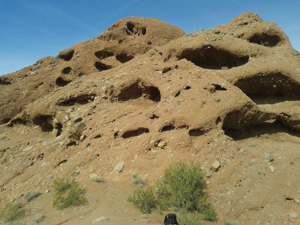 Pemandangan dari atas juga indah banget. Birunya langit pas banget dengan pemandangan asli gurun di sekitarnya. Dari sini juga terlihat Phoenix Zoo dan Desert Botanical Garden. Yang unik dari Papago Park ini adalah bukitnya yang bolong bolong. Kabarnya untuk bikin bolong itu perlu jutaan tahun loh.