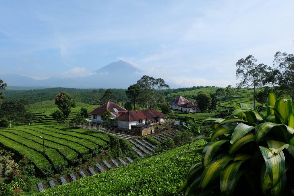 Wahh ternyata di Jambi ada perkebunan teh terluas di dunia ya. Backgroundnya Gunung Kerinci pula.